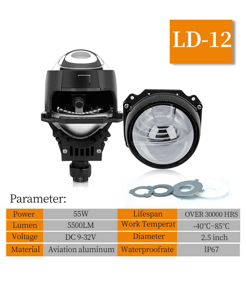 Universal Auto Bi LED Projector Lens Car Headlamp Retrofit Halogen Bulb Replace-LD6
