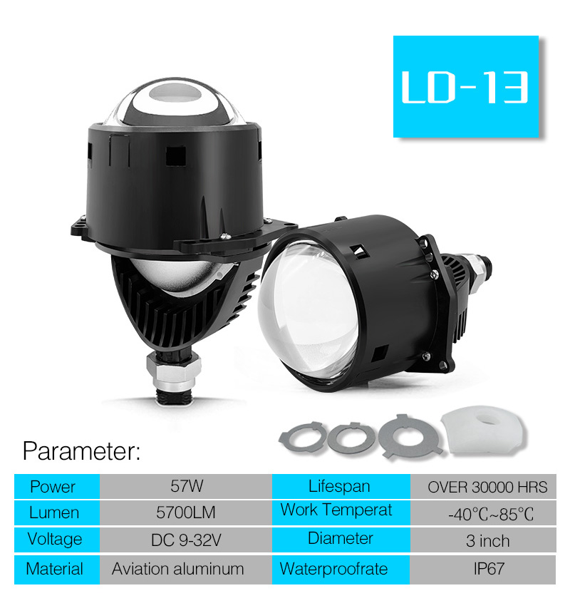 Universal Auto Bi LED Projector Lens Car Headlamp Retrofit Halogen Bulb Replace-LD6